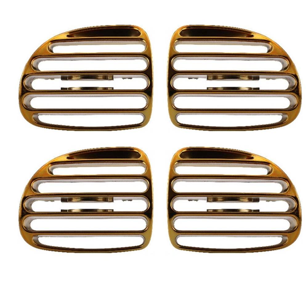 • پوشش لاکی طلایی (Gold Lacquer Finish): برجسته‌ترین ویژگی این محصول، پوشش نهایی آن است. رنگ طلایی لاکی (براق)، یک جلوه بسیار لوکس و چشم‌نواز به دریچه‌ها می‌بخشد. این رنگ، تضاد زیبایی با رنگ مشکی داشبورد ایجاد کرده و به جای استفاده از رنگ‌های تند، یک حس گران‌قیمت و سفارشی به کابین می‌افزاید.