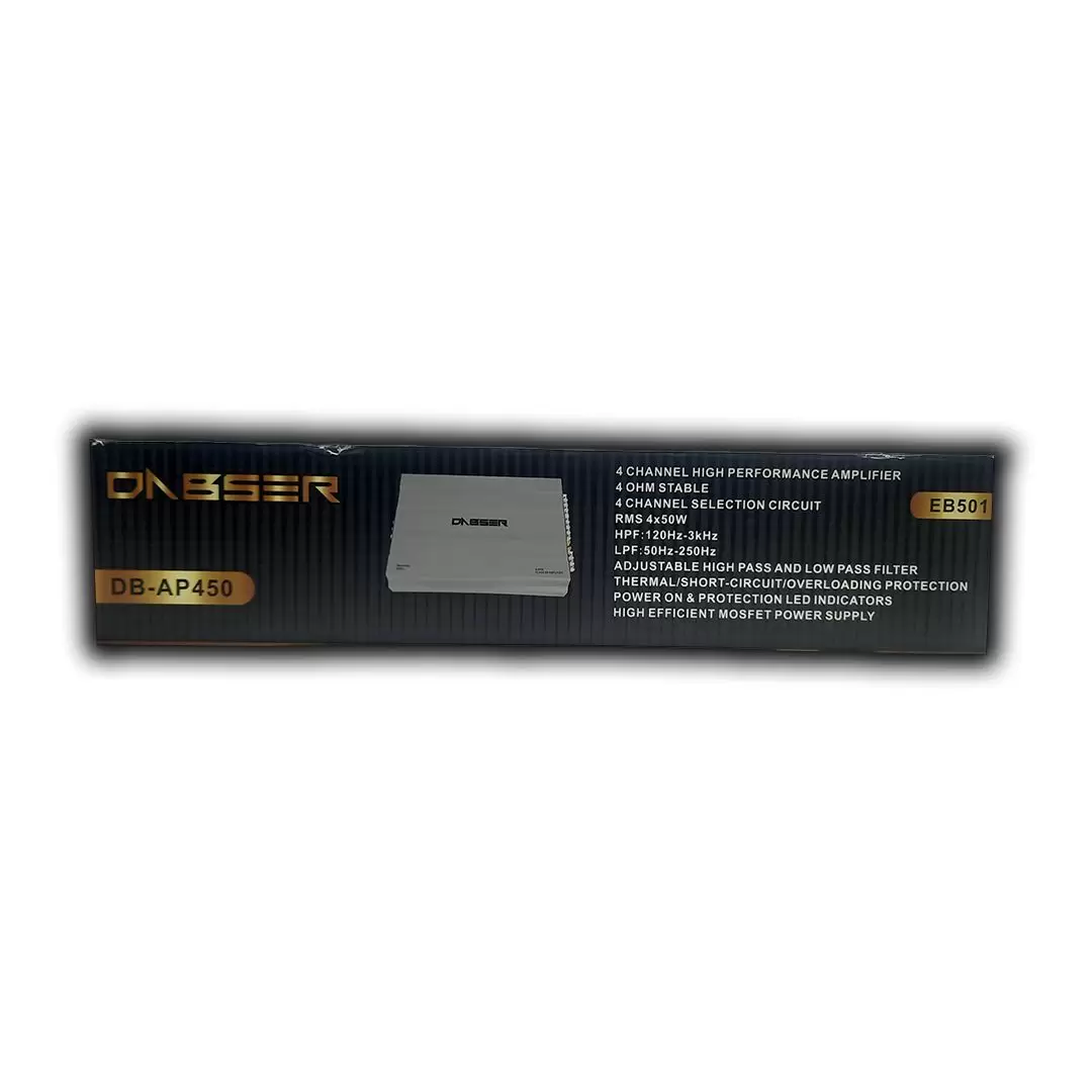 آمپلی فایرDAbser مدل AP450 جهت تقویت دو جفت بلندگو و با یک جفت باند و یک ساب مناسب است.